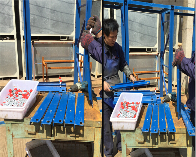 11.把模具貨架移到需要放置模具的合適位置,用電動螺絲批打爆炸螺絲緊固整個架身;