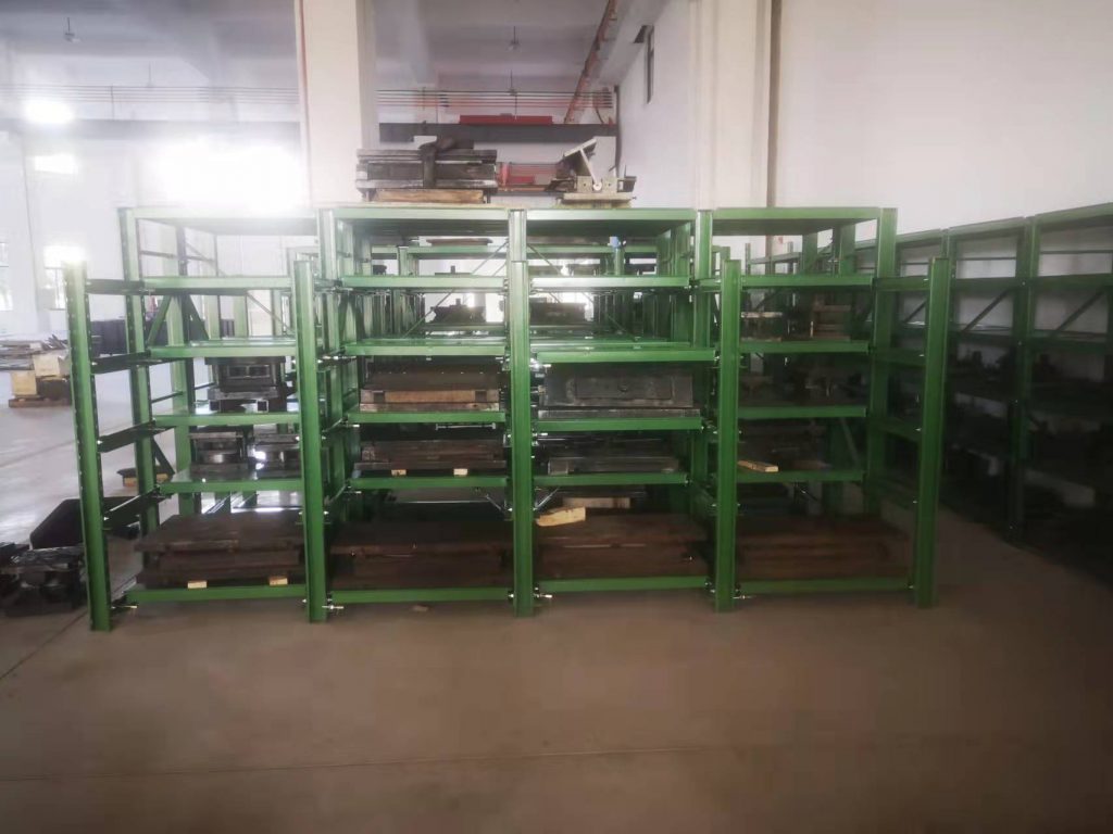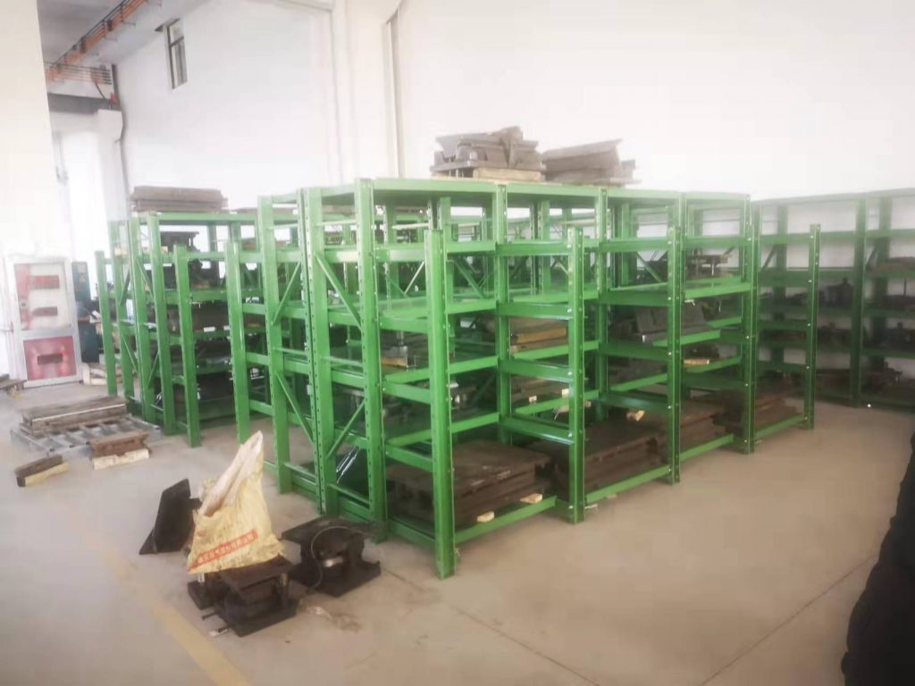 500-1000KG的模具存放在,博儲(chǔ)全抽模具架上,配合行車存??;